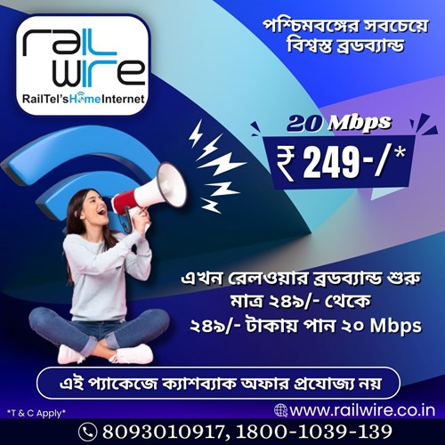 Cyber Web, an authorized RailWire Franchisee, proudly offers high-speed broadband in Midnapore Town. Backed by RailTel, a Government of India enterprise, RailWire delivers secure and ultra-fast internet using Indian Railways' fiber optic backbone.